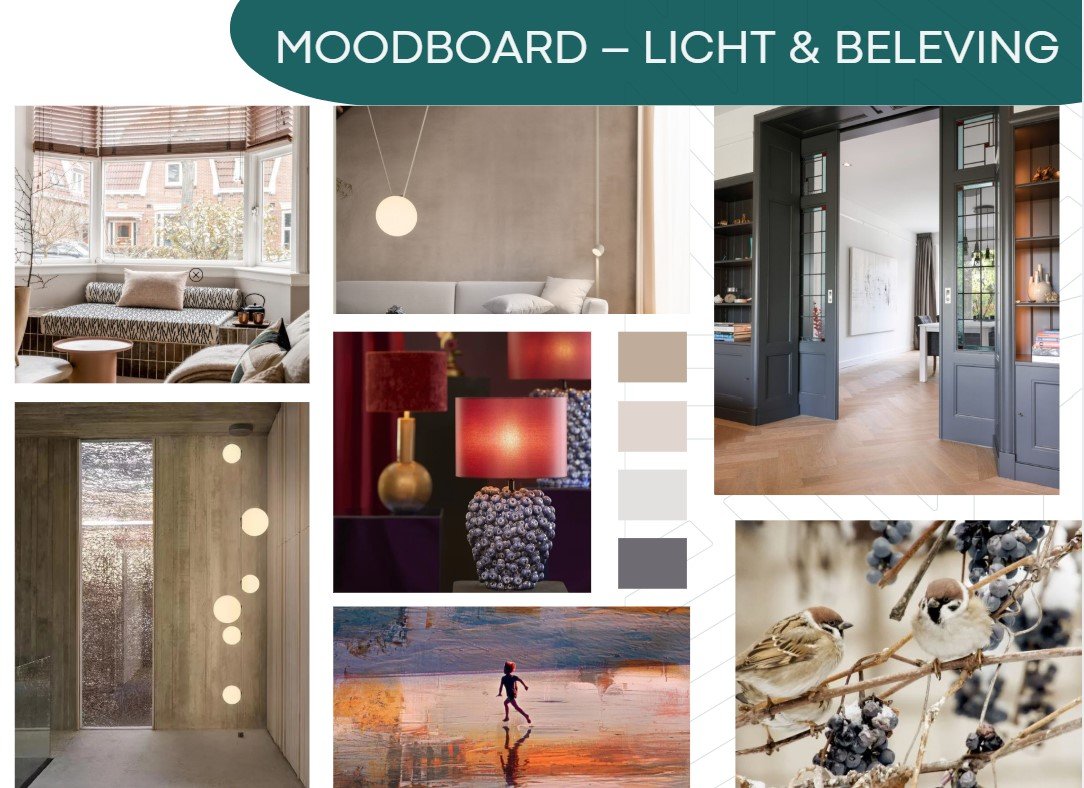 Na het licht volgen de kleuren en motieven: een gewaagde mix die de historische charme van het pand een moderne, spannende knipoog geeft. De vakmensen zijn inmiddels gestart; binnenkort zie je hier hoe licht en kleur en meubels samensmelten tot een uniek geheel.